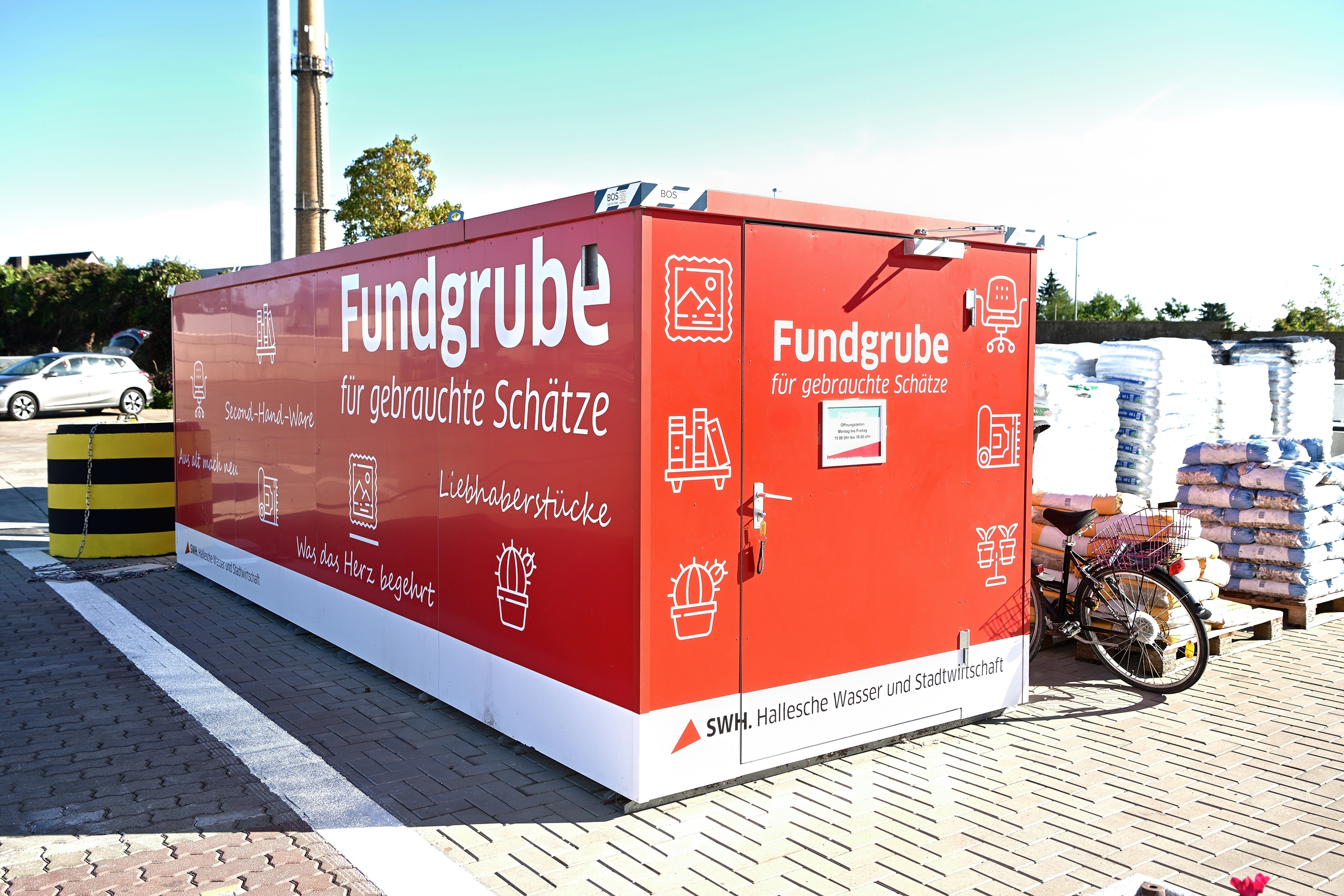 Die Stadtwerketochter Hallesche Wasser und Stadtwirtschaft GmbH (HWS) präsentiert ihren beliebten Second-Hand-Container „Fundgrube für gebrauchte Schätze“ ab sofort an einem neuen, besonders präsenten Standort: Direkt im Einfahrtsbereich an der Anmeldung des Wertstoffmarkts Äußere Hordorfer Straße. Damit rückt das nachhaltige Angebot buchstäblich ins Rampenlicht und macht die Wiederverwendung gebrauchter Dinge für alle Besucherinnen und Besucher noch sichtbarer und attraktiver. Wer gut erhaltene, funktionsfähige Gegenstände wie Geschirr, Kleinmöbel, Spielzeug oder Fahrräder abgeben möchte, kann sie direkt an der Anmeldung auf dem Wertstoffmarkt in der Äußeren Hordorfer Straße 12 abgeben. Auch auf den Wertstoffmärkten in Radewell und in der Schieferstraße ist die Abgabe möglich. Die Fundgrube hat montags bis freitags 15 Uhr bis 18 Uhr geöffnet. Alle Gegenstände werden zu sehr günstigen Preisen abgegeben.