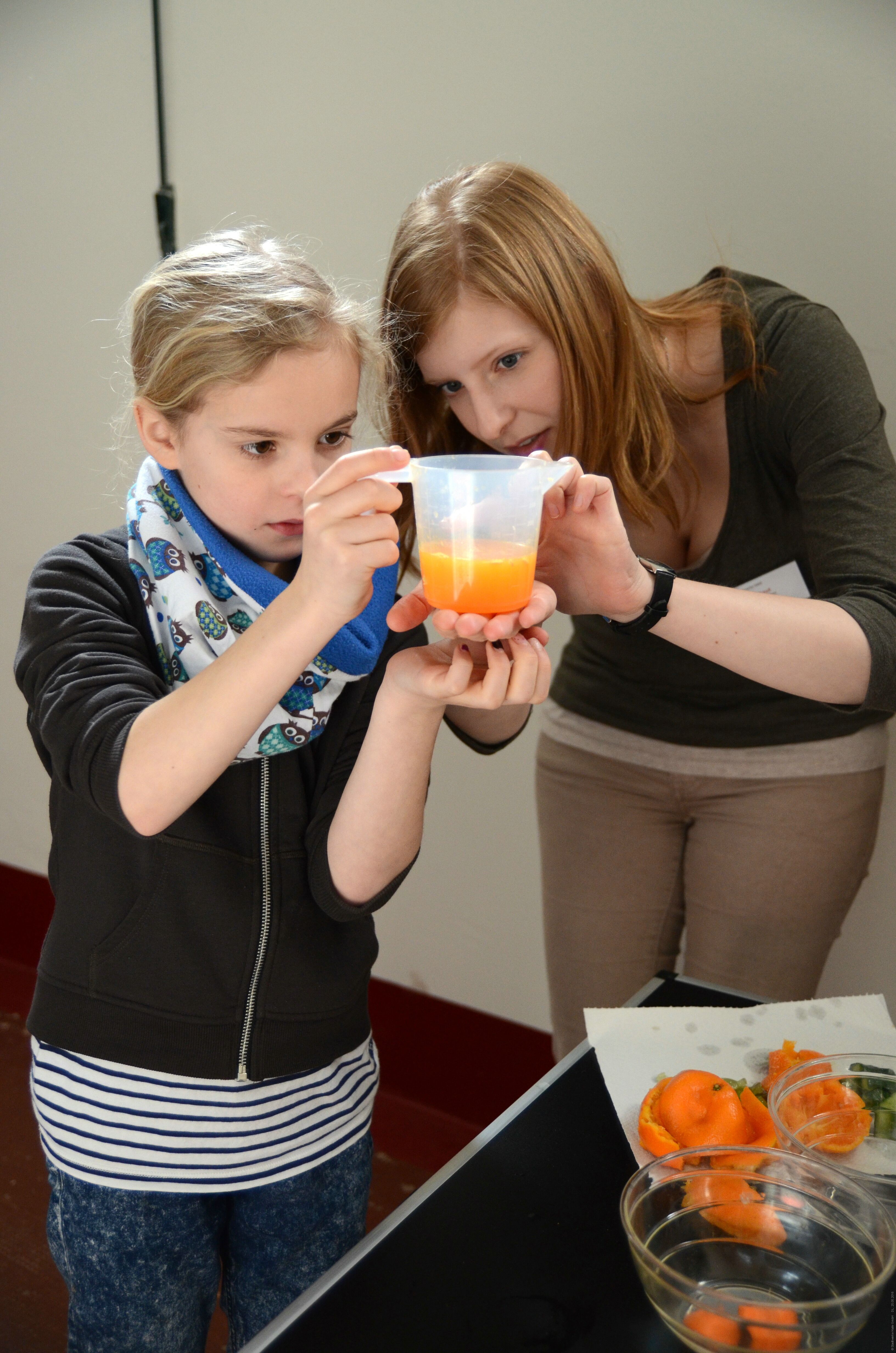 Bei einem Experiment in der Wasserwerkstatt untersuchten die Kinder, welche Inhaltsstoffe die Eigenschaften von Wasser bestimmen.