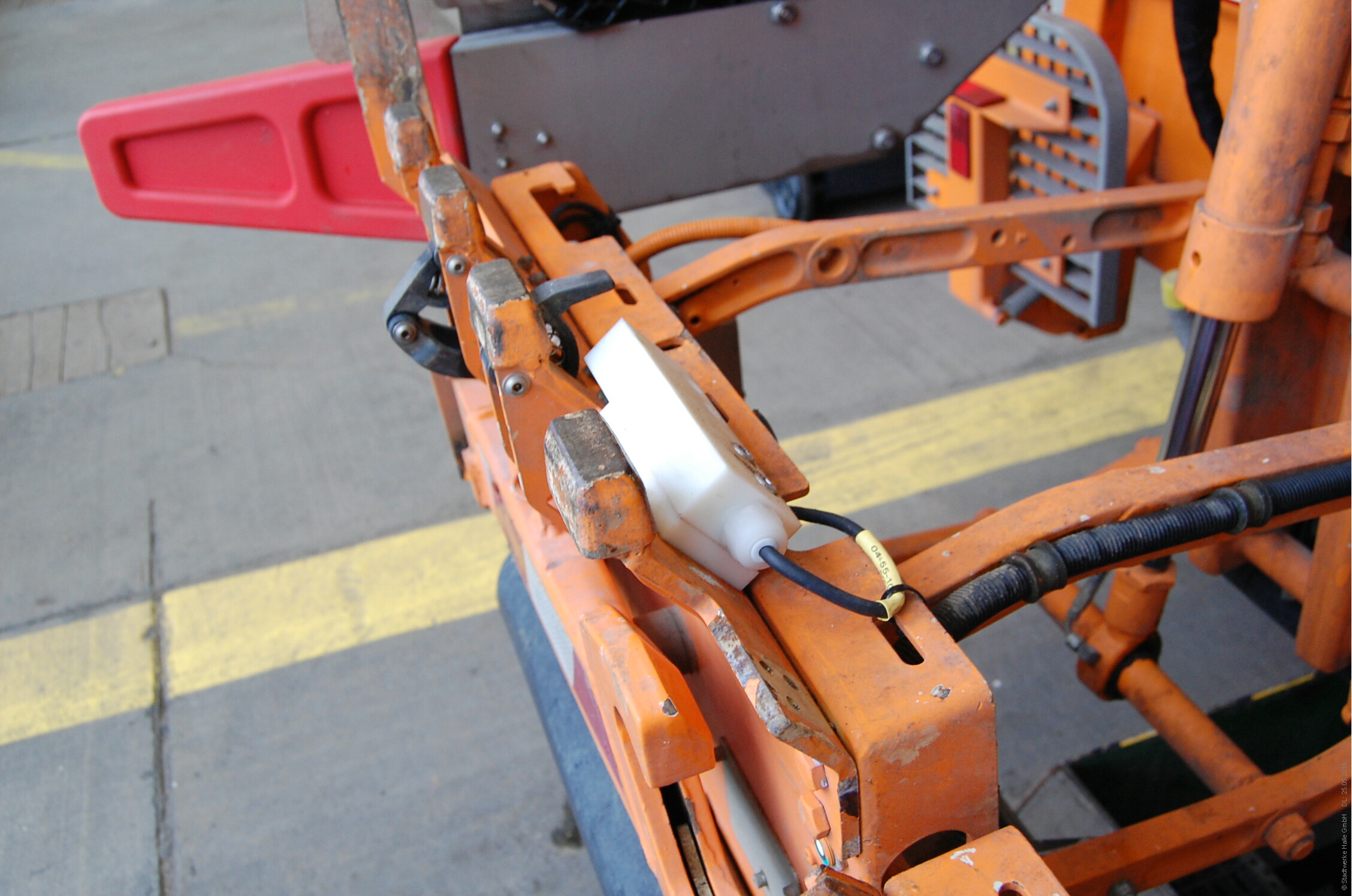 Mittels einer Antenne an der Schütteinrichtung der Müllfahrzeuge können die HWS-Mitarbeiter vor der Leerung den Funkchip und Barcode lesen und den Behälter eindeutig identifizieren.