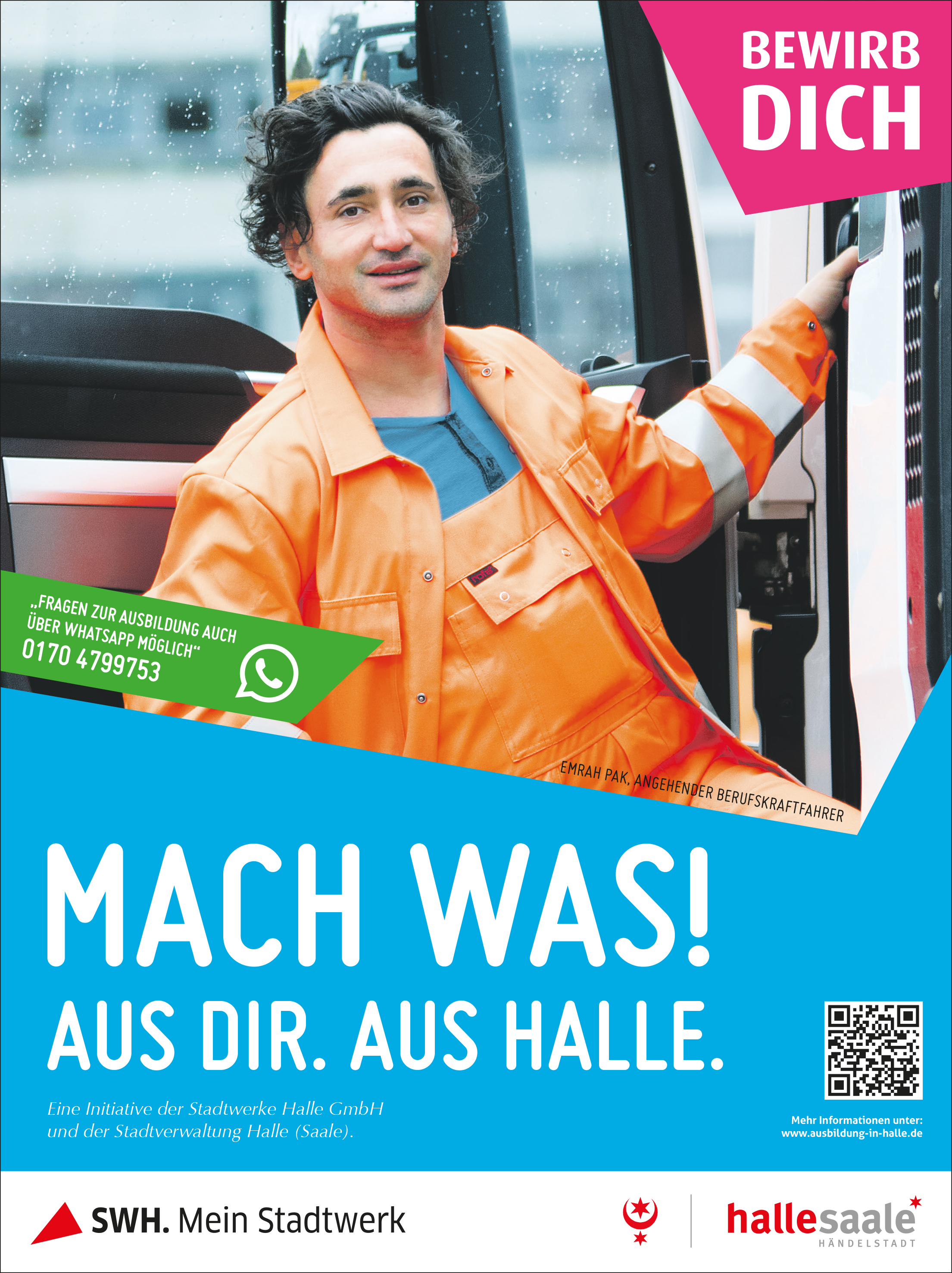 Vor über einem Jahr hatten beide Arbeitgeber gemeinsam die Ausbildungskampagne „Mach was. Aus Dir. Aus Halle.“ ins Leben gerufen. „Die Idee dahinter: Es lohnt sich allemal, sein Berufsleben in der Heimat zu starten. Die Ausbildungsangebote in Halle sind so vielfältig wie noch nie, begleitet von immer weiter wachsenden Standards“, wirbt Bürgermeister Egbert Geier, Beigeordneter für Finanzen und Personal der Stadt