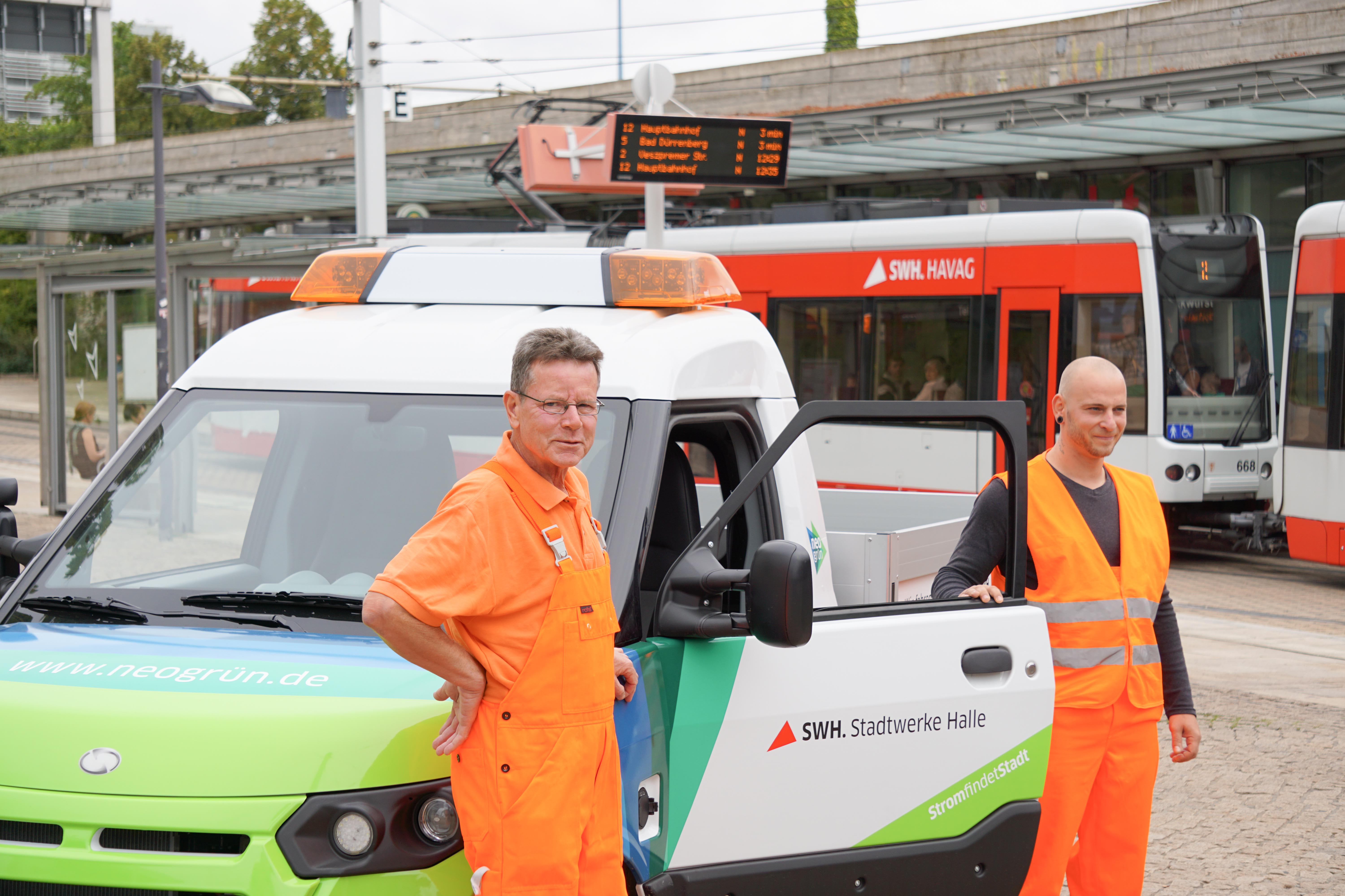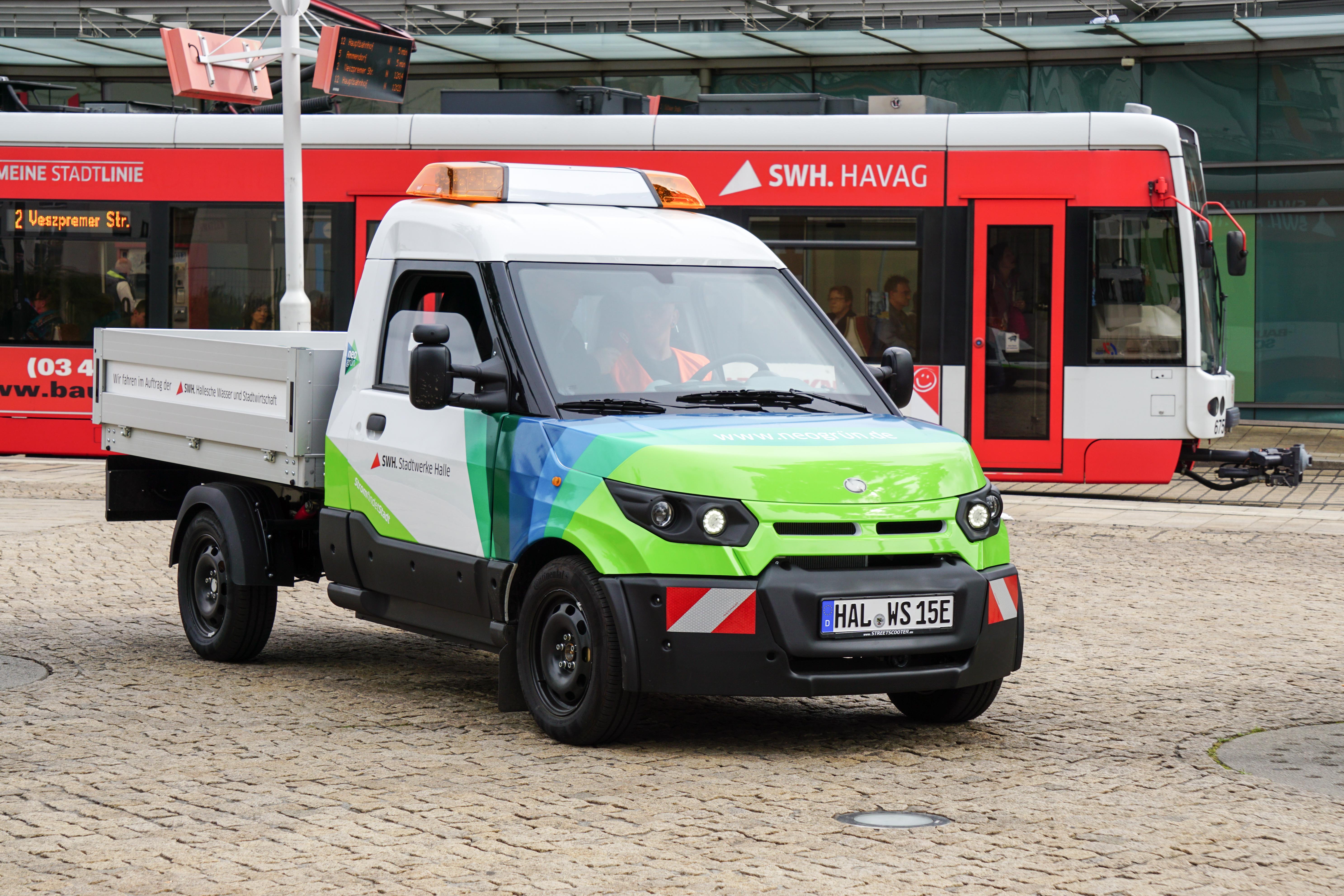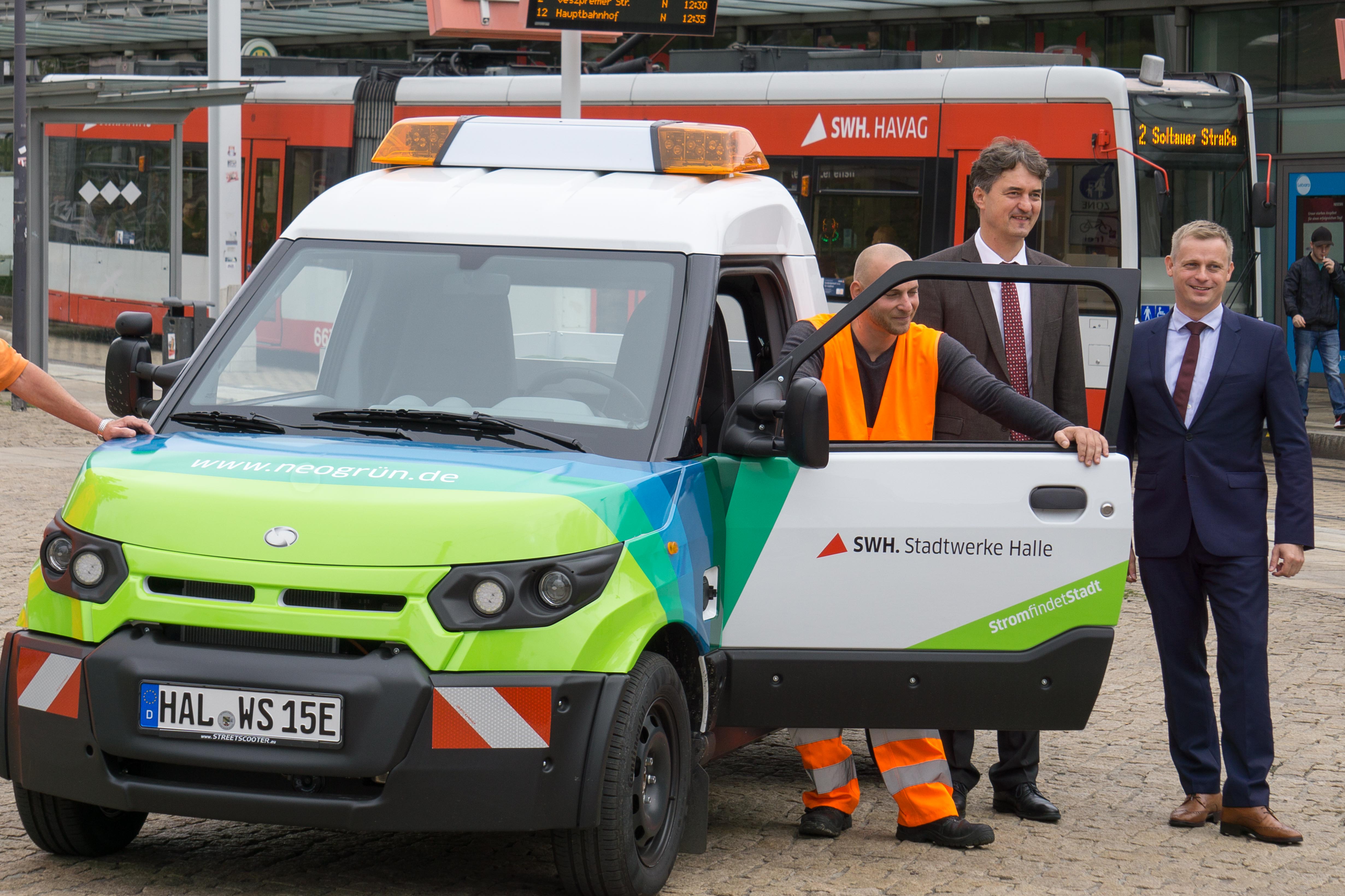 Halle ist E-Mobilitäts-Hauptstadt Sachsen-Anhalts. Dazu tragen bisher 19 öffentliche Ladesäulen bei, die in und um die Saalestadt verteilt sind. Nun erfolgt bei den Stadtwerken Halle (SWH) der nächste Meilenstein: Ab sofort kommt als Pilotprojekt für die Innenstadtreinigung u.a. der erste reine e-Transporter der SWH zum Einsatz. Dieser StreetScooter, den die Deutsche Post DHL Group entwickelt und produziert hat, ist Teil der SWH-Kampagne „neogrün“, mit der die Stadtwerke Halle den Ausbau der E-Mobilität in Halle weiter aktiv vorantreiben. Seit April 2016 stellt die Deutsche Post in Halle Sendungen mit ihren eigens entwickelten und produzierten StreetScootern zu. Aktuell sind zehn der gelben Fahrzeuge im Einsatz. Der Transporter kann derzeit in fünf Modellvarianten erworben werden. Die Stadtwerke Halle gehören zu den ersten Kunden, die einen StreetScooter für ihre kommunale Flotte einsetzen.