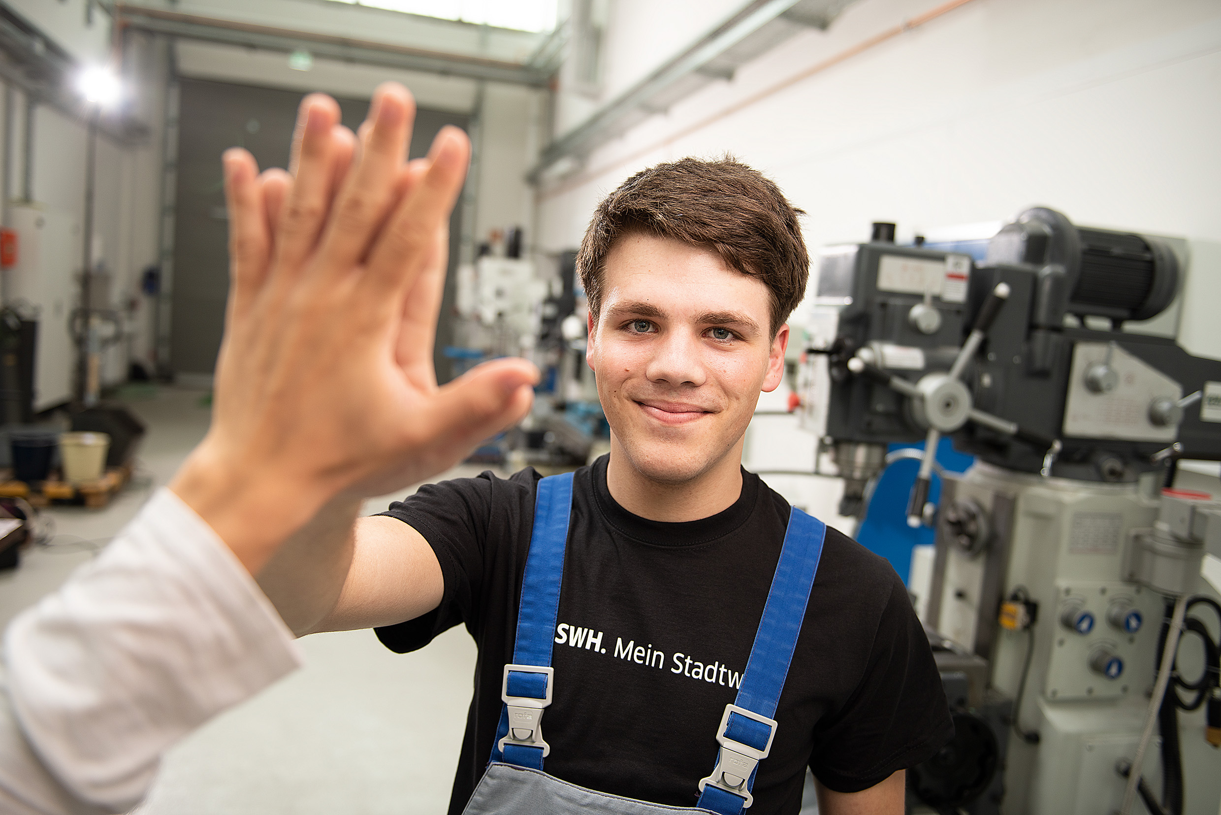 Der Hashtag #ZukunftHoch5 und das begleitende HIGH FIVE-Motiv tauchen immer wieder in der Stadt auf: So wurde in einer Nachtaktionen mittels Sprühkreide auf dem Marktplatz auf den neuen Kanal hingewiesen. Fünf menschengroße Hände liefen im Mai durch die Stadt und verteilten „HIGH FIVE“-Einladungen zur Eröffnung der neuen ‚Lernwerkstatt‘ – dem hochmodernen neuen Ausbildungszentrum der SWH. Zudem stand die alljährliche Schools Out-Party im Turm zum Anfang der Sommerferien unter dem Motto „HIGH FIVE“ – ebenso ein bunter Event-Nachmittag auf dem Marktplatz. Neben vielen Ausbildungs-Infos sowie Gesprächsmöglichkeiten mit Azubis und Ausbildern, bot er Besuchern: XXL-Tischkicker, Sumōringen, Fotobus, Postkartenstempeln, DJ-Duo und heiße Waffeln.