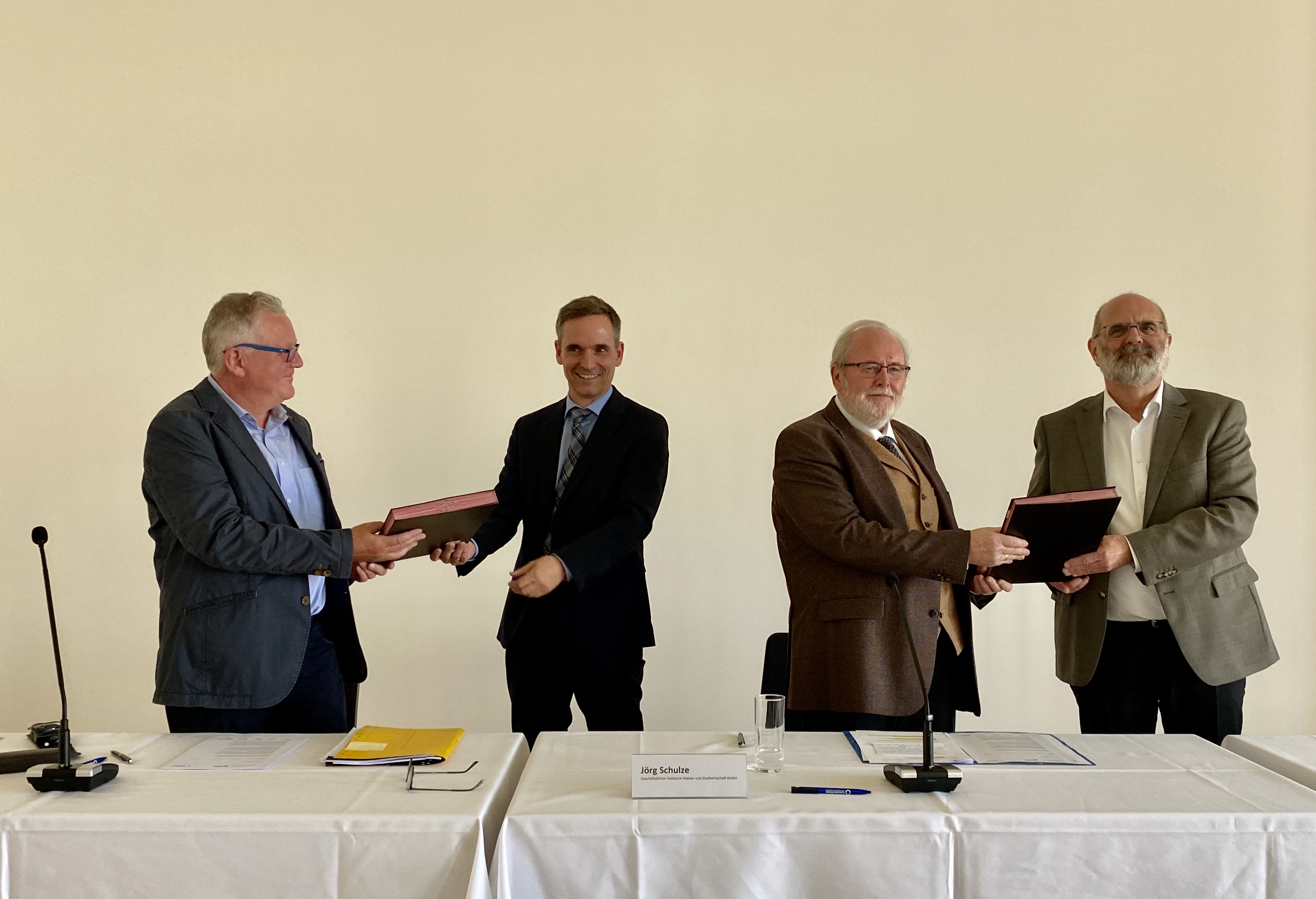 Halle (Saale), 10. September 2020 - Von Landwirtschaft und Mitverbrennung zur Monoverbrennung: Mitteldeutsche Klärschlämme werden ab dem 1. Januar 2023 in Bitterfeld entsorgt und thermisch weiterverwertet. Eine entsprechende Zehn-Jahres-Kooperation schlossen am heutigen Donnerstag, dem 10. September 2020, länderübergreifend die Leipziger Wasserwerke und die Hallesche Wasser und Stadtwirtschaft GmbH mit der KSR Klärschlammrecycling GmbH (KSR) im Chemiepark Bitterfeld-Wolfen.